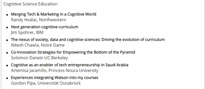 Jaramillo, A. 2016, ‘Watson Goes to College: Cognitive as an Enabler of Tech Entrepreneurship in Saudi Arabia, the high-tech product management initiative’, the World of Watson IBM annual conference, Las Vegas, Oct 2016.