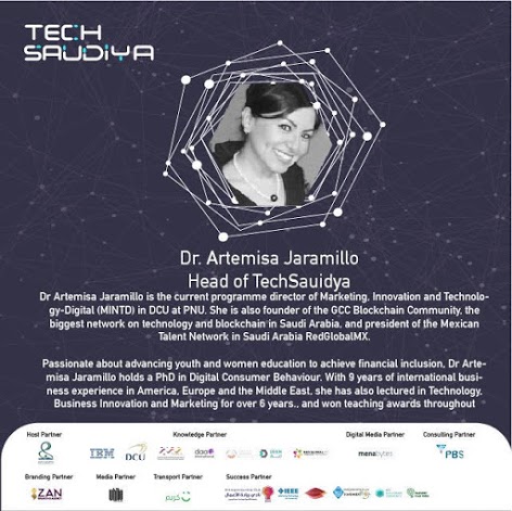 Jaramillo, A. 2018, ‘Blockchain in Saudi Arabia: Opportunities and Challenges’. Panelist. TechSaudiya. Riyadh, March 2018.