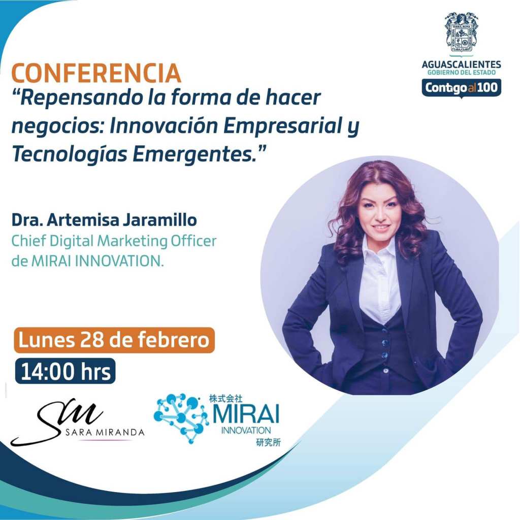 Jaramillo, A. 2022, “Rethinking business: innovation and emerging technologies”. Keynote Speaker. Government of the state of Aguascalientes. Mexico, February 2022.