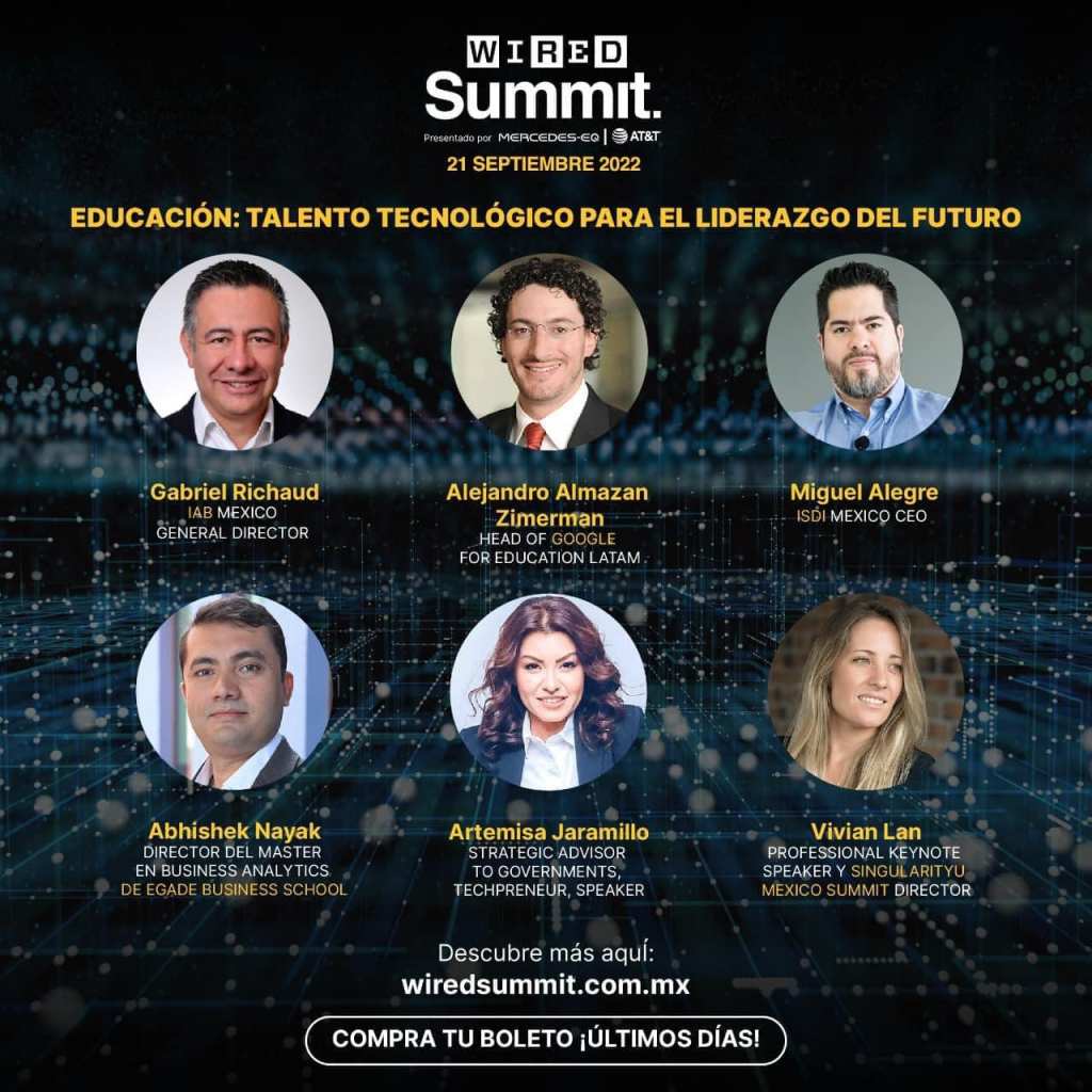 Jaramillo, A. 2022, “Rethinking education: innovation and emerging technologies”. Panelist. Wired Summit 2022. Mexico City, September 2022.